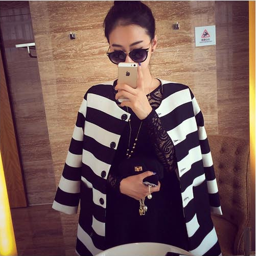 > Damen Bekleidung > Jacken > passen in Grösse neuen Frühling im Herbst Damen OberBekleidung Gestreiften gedruckten Jacke slim casual Mantel Collarles