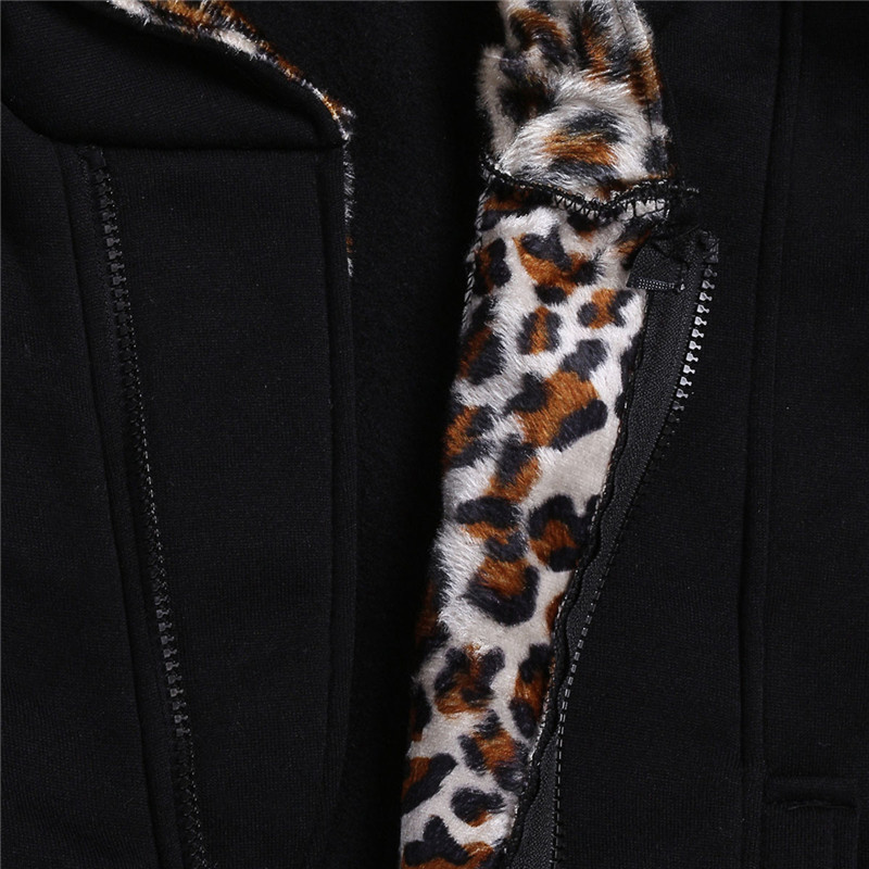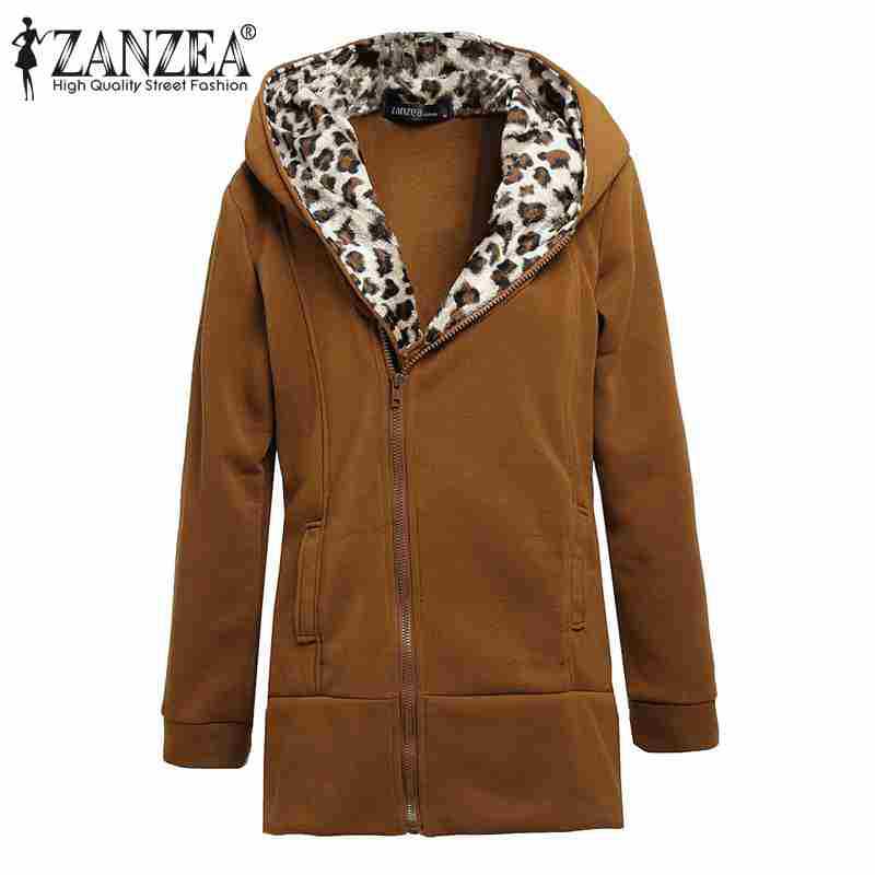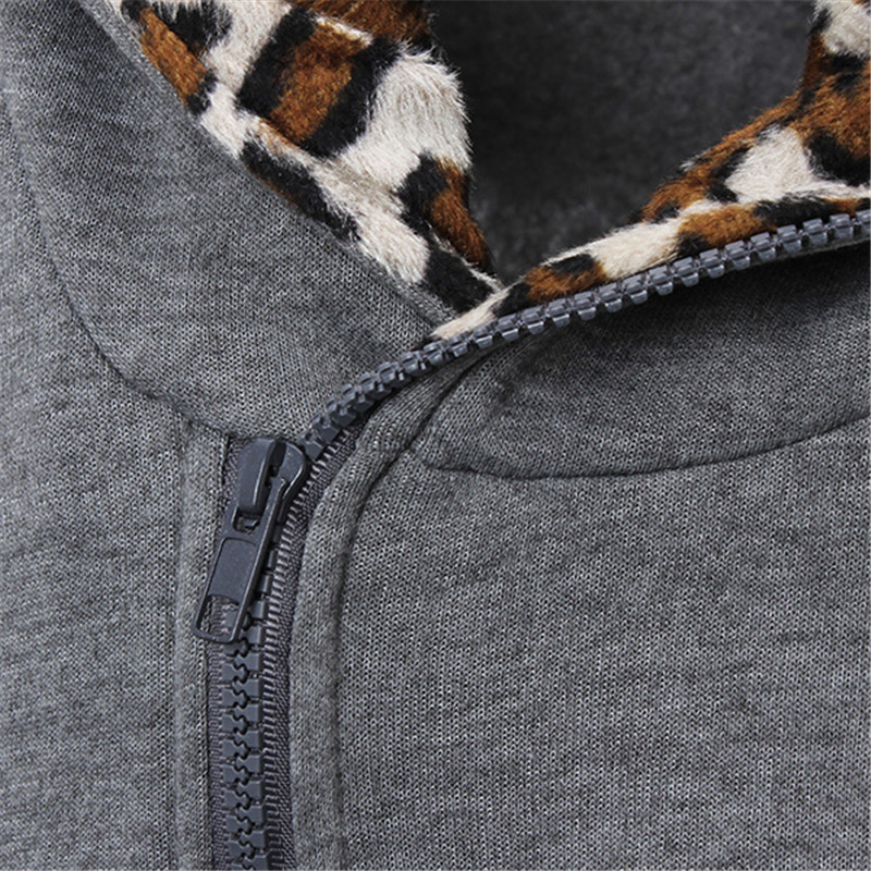 > Damen Bekleidung > Jacken > plus Size m xxl Herbst Winter Mode Damen Leopard gedruckten reißverschluss bis KapuzenMantel Jacke lange Ärmel out