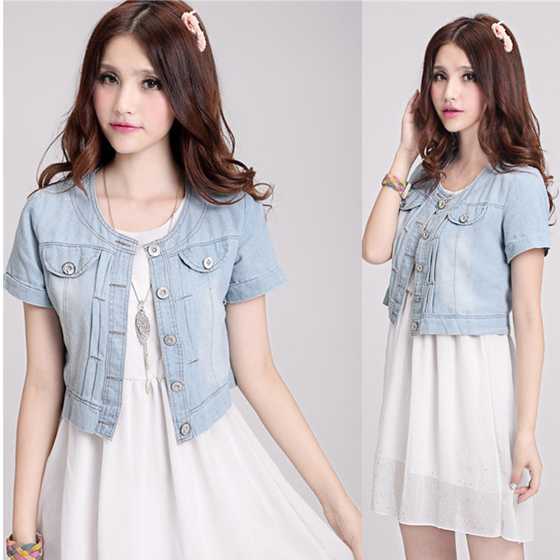 > Damen Bekleidung > Jacken > kostenLoser Versand neue Mode Damen um den Hals kurze Jeans und Jacke Mantel Hälfte Ärmel Button Jean s m l xl xxl