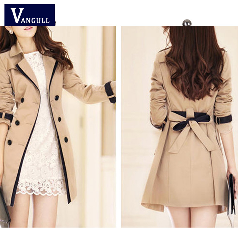 > Damen Bekleidung > Jacken > Vangull Trenchcoat für Damen Mode ab Kragen zweireiher gegensatz Farbe lange Mäntel und Grösse casaco
