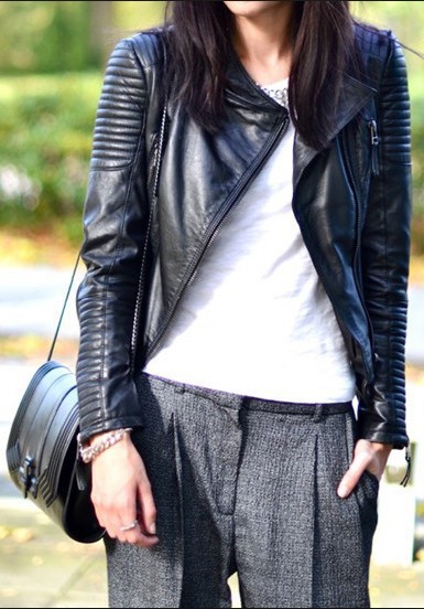 - mode elements: Pu Rivet Black Blazer reißverschlusss Coat Motorcycle