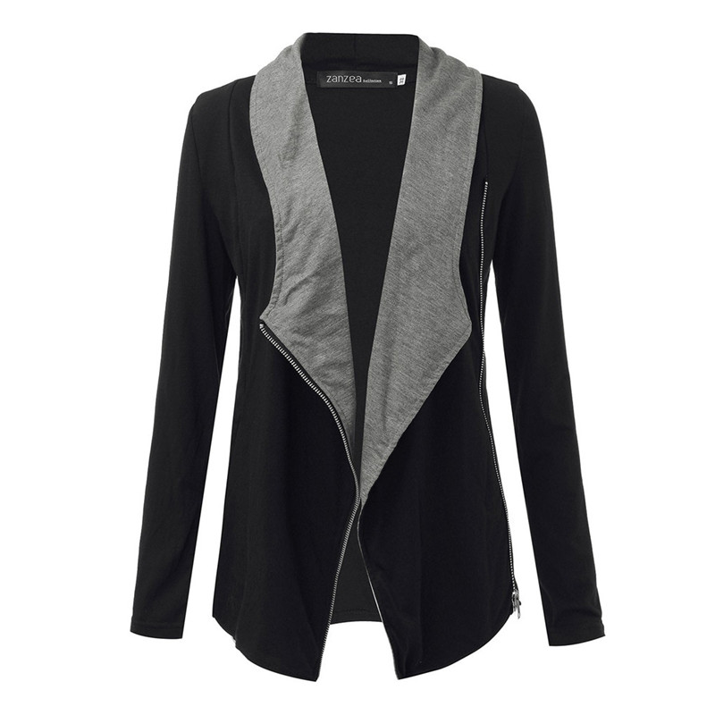 > Damen Bekleidung > Jacken > Herbst Winter Koreanischer Stil lange Ärmel slim ab Kragen Seite reißverschluss Mantel Jacke Damen Strickjacke casaco