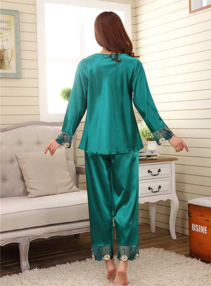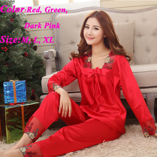 > Damen Bekleidung > Schlaf > neuer Stil Damen Seidenpyjama Setzt Frühjahr Sommer Design eleganter Spitze Bestickt weibliche Satin Pyjama Rot