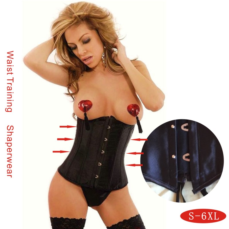 > Damen Bekleidung > Dessous > goth Satin Schwarzen korsagen sexy dessous Damen Stahl Taille Ausbildung underbust Bustiers plus Size corselets Top