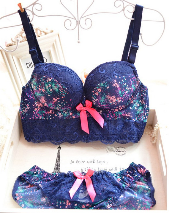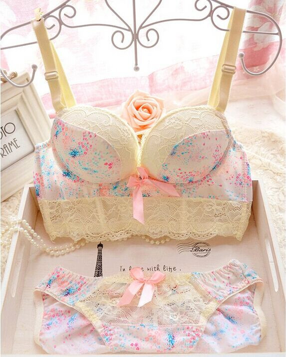 > Damen Bekleidung > Dessous > neuzugang Prinzessin Stil süß gedruckt Spitzen schneiden push up sexy drahtLose Damen Büstenhaltersatz einstellbare