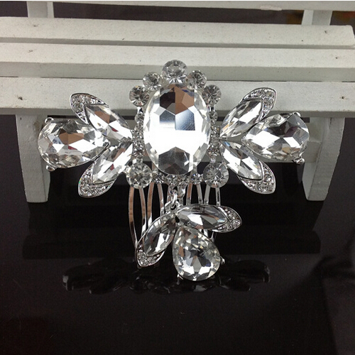 > Damen Bekleidung > Zubehör > Damen Mädchen Braut Hochzeit silVer Crystal Strass diamante Blume HaarSpange kamm pin zubehör Kopfbedeckung