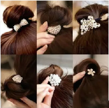 > Damen Bekleidung > Zubehör > 1001 4PC Damen imitiation Pearl diamond elastischen Haargummis Seil KopfSchmuck diadem de cabelo schnell Brötchen Haare
