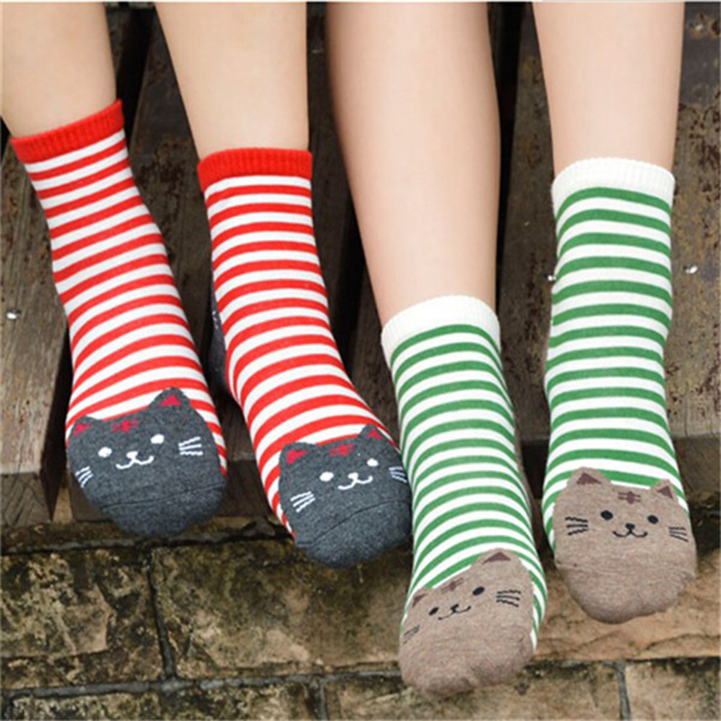 > Damen Bekleidung > Socken > hohe Qualität der 3d Tier Katze Fussabdrücke 6 Farben Gestreiften comic Socken Damen Baumwolle bodenlangen Socke für