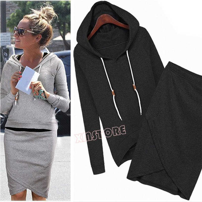 > Damen Bekleidung > Anzüge > neue Mode Damen Sport Steht Freizeit SweaT Shirts Frühjahr Herbst casual Trainingsanzug Top Rock und 2 Stück sv004932