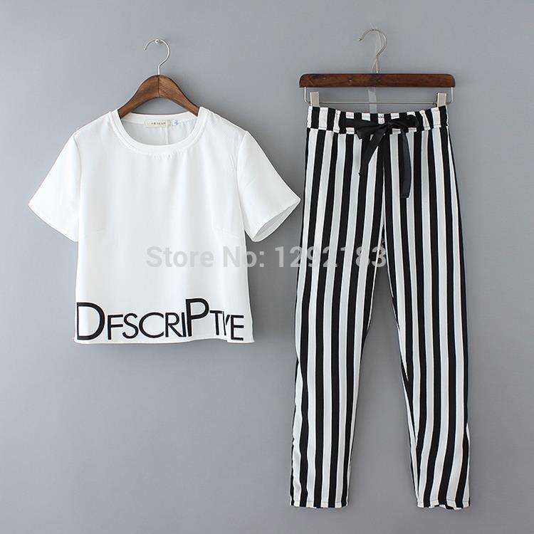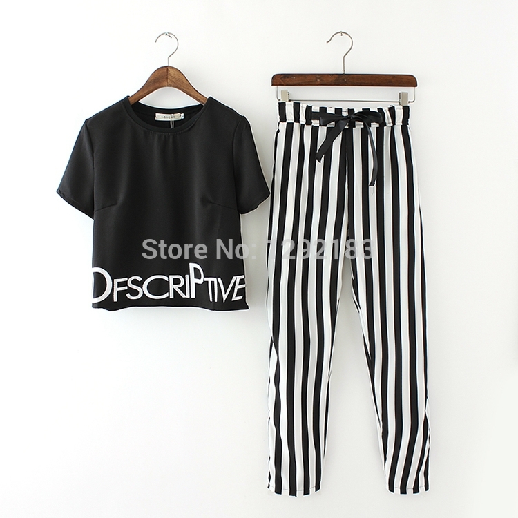 > Damen Bekleidung > Anzüge > Gestreifte Hose und um den Hals Kurzarm T Shirt Anzug für Damen free Damen und Anzüge