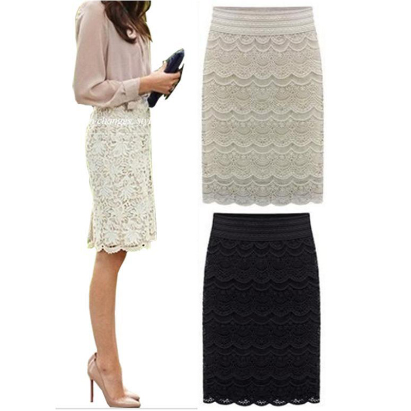 > Damen Bekleidung > Hosen > hohe Taille Bodycon Rock Spitzen Damen Röcke weibliche Schwarze saia curta Feminino Vintage Damen BleiStift Rock