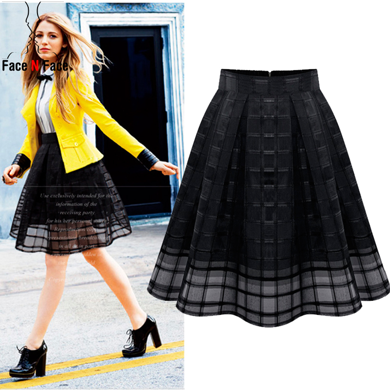 > Damen Bekleidung > Hosen > Damen Organza Midi Röcke neuen Sommer Stil elastischen hohe Taille reißverschluss Damen Rock weiblich plissiert ein