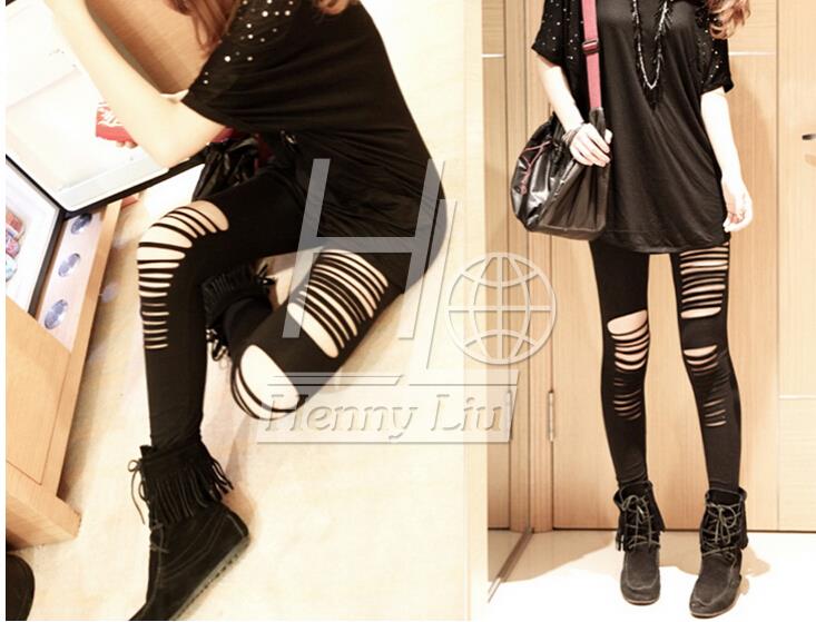 > Damen Bekleidung > Hosen > stretch Schwarze tanzen ein Riss Leggings elasticized Taille Damen sexy Leggings zerrissenen Hose Winter Leggings