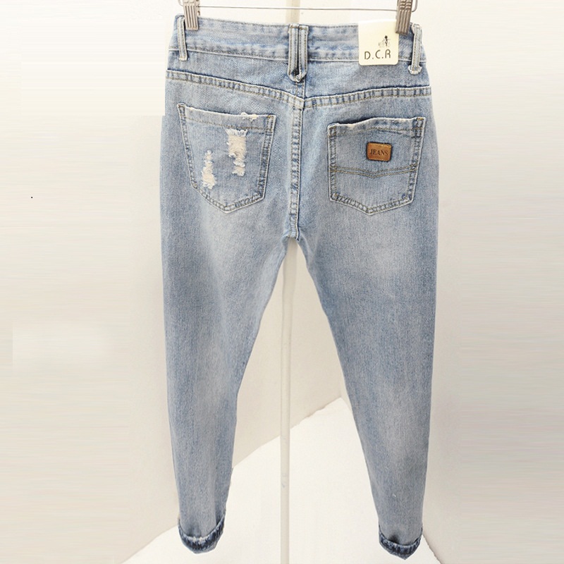 > Damen Bekleidung > Hosen > Freund Jeans für Damen neue Mode Sommer Stil Damen Jeans Locker löcher Denim Harem Hose zerRissener Jeans Frau
