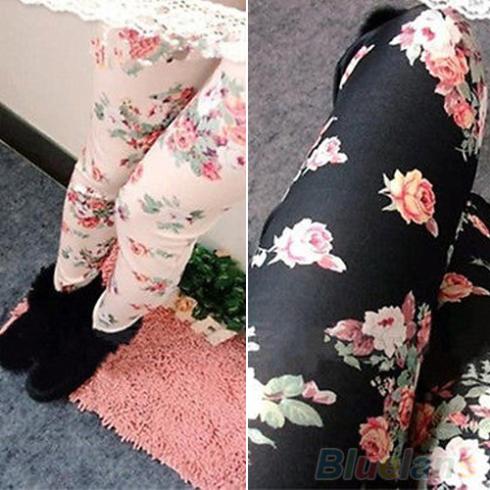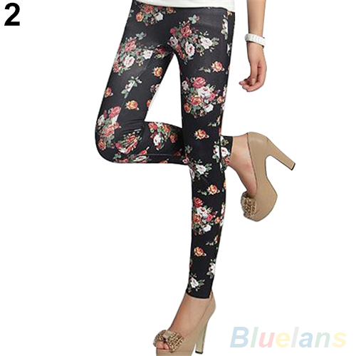 > Damen Bekleidung > Hosen > Damen schicken retro Rose Blume Print Leggings Hose elastizität Dünne neuer Stil 2md9