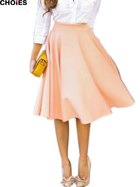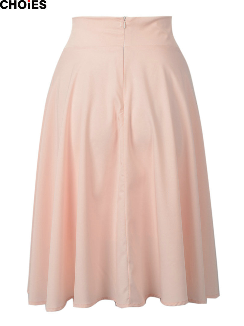 > Damen Bekleidung > Hosen > choies Damen perfekte pfirsich Rosa Bundfalten eine linie saias Femininas geweitete hohe Taille Midi Skater Rock