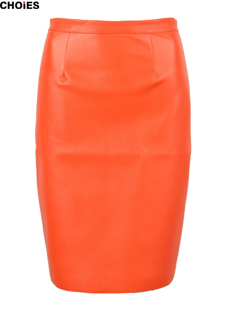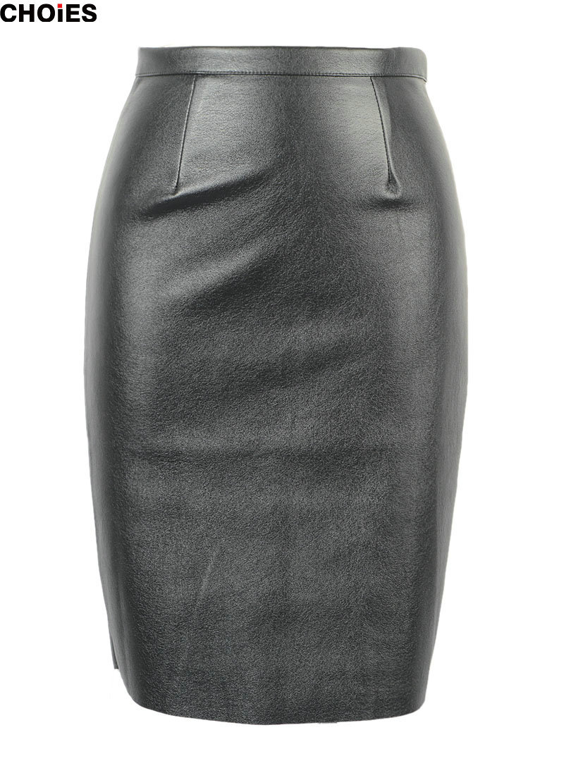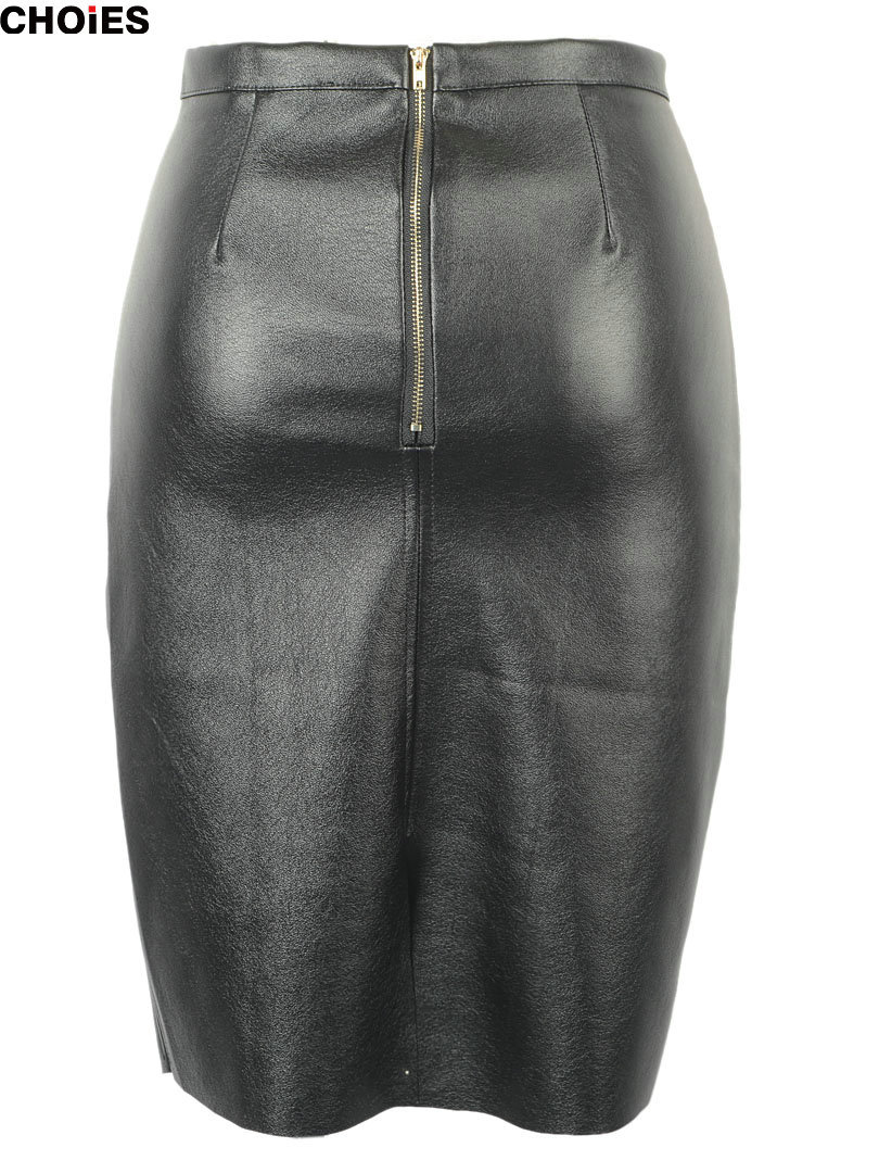 > Damen Bekleidung > Hosen > choies Damen Schwarze Leder split reißverschluss wieder hohe Taille Faux Bleistift Rock im Frühjahr