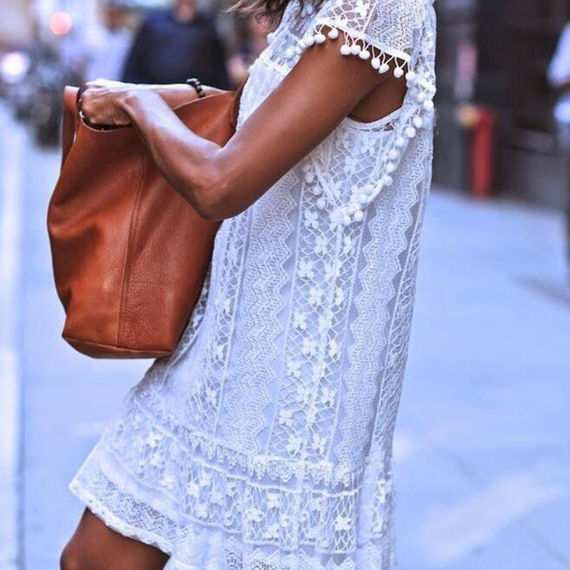 > Damen Bekleidung > Kleider > Mini Ärmellose Kleidung casual Weisser Spitze Kleid boho Kleidung Locker Patchwork Kleid und Grösse Damen Vestidos