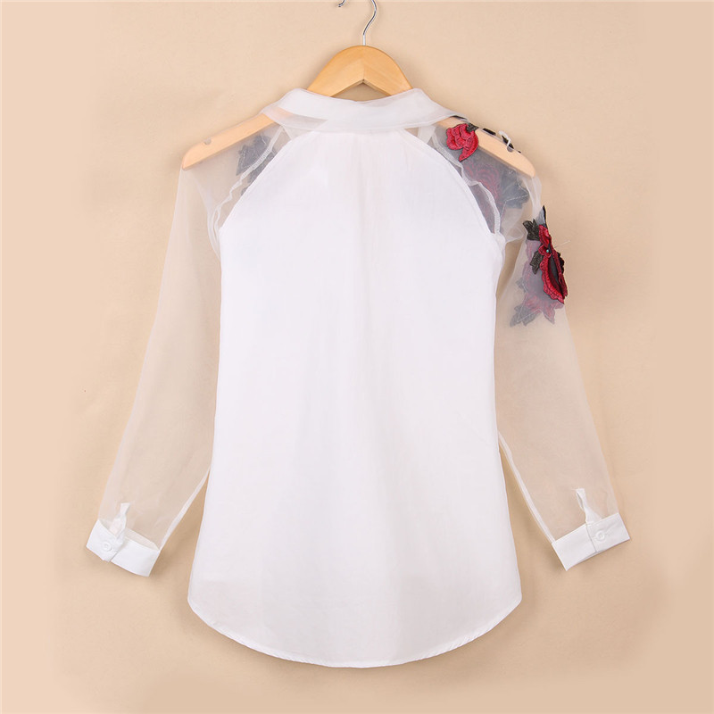> Damen Bekleidung > Shirts > Mode Sommer elegante Damen Bluse Blume Stickereien Vintage T Shirts Organza Ärmel Tops und Grösse s 3xl