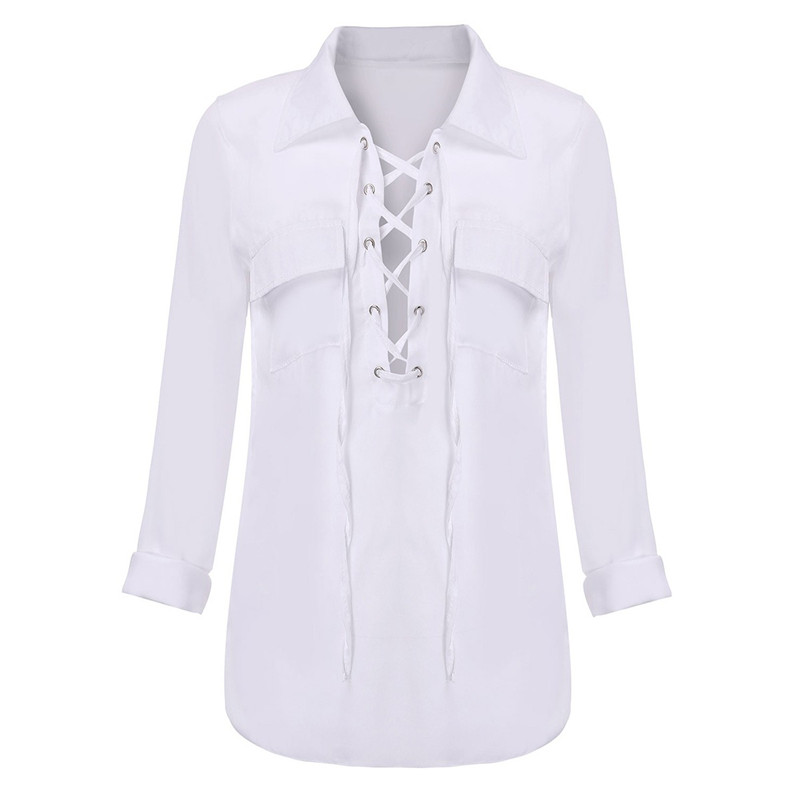 > Damen Bekleidung > Shirts > Mode Femininas Womens dreh Kragen Spitzen lange Ärmel Bluse sexy Weissen Chiffon Hemd Tops