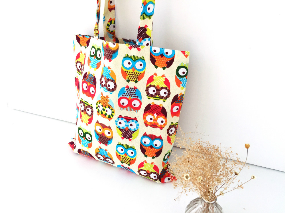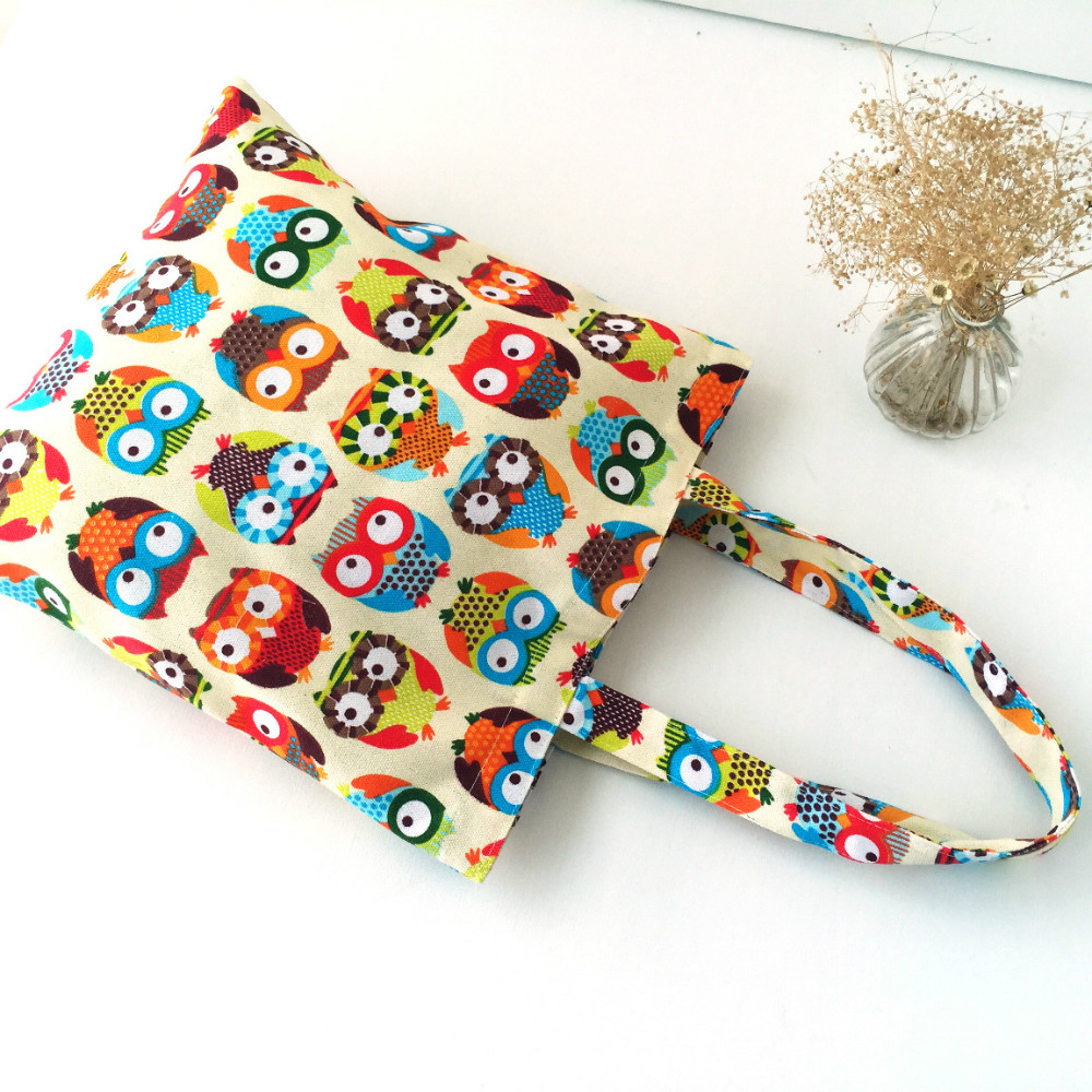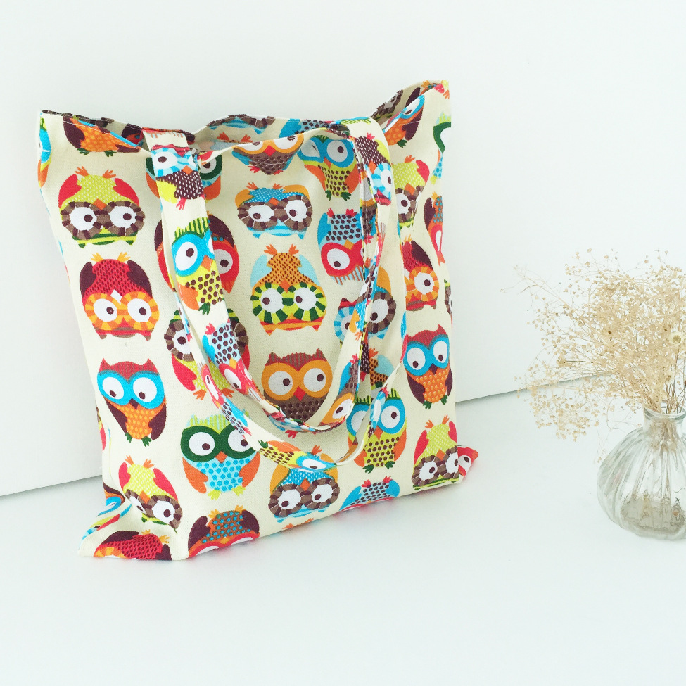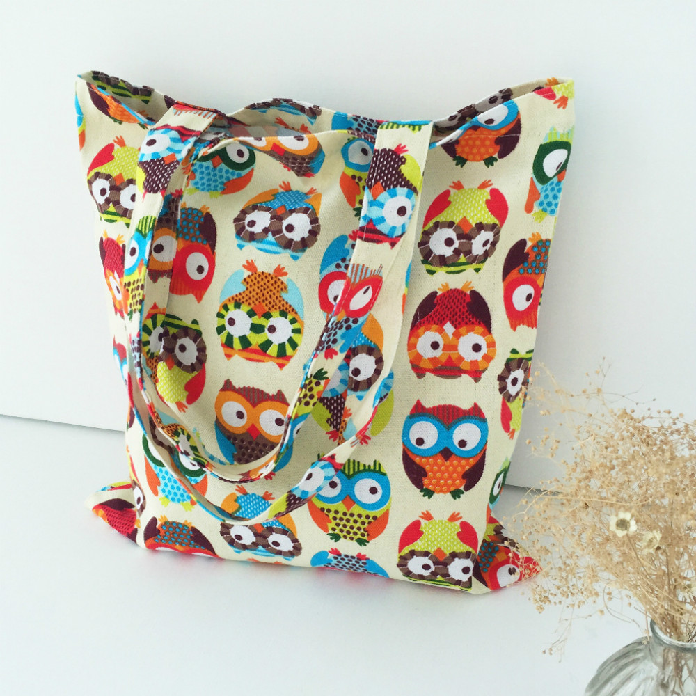 > Taschen Geldbörsen > Funktion Taschen > Baumwolle Leinwand Einkaufstasche Schulter Tragetasche Eco Wiederverwendbare Tasche Drucken Bunte Eulen ohne Futter NEUE