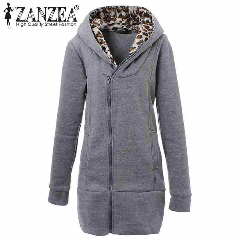> Damen Bekleidung > Jacken > plus Size m xxl Herbst Winter Mode Damen Leopard gedruckten reißverschluss bis KapuzenMantel Jacke lange Ärmel out
