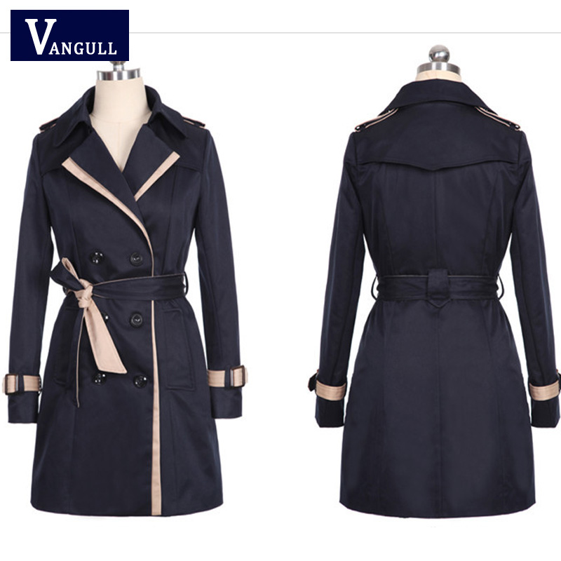 > Damen Bekleidung > Jacken > Vangull Trenchcoat für Damen Mode ab Kragen zweireiher gegensatz Farbe lange Mäntel und Grösse casaco