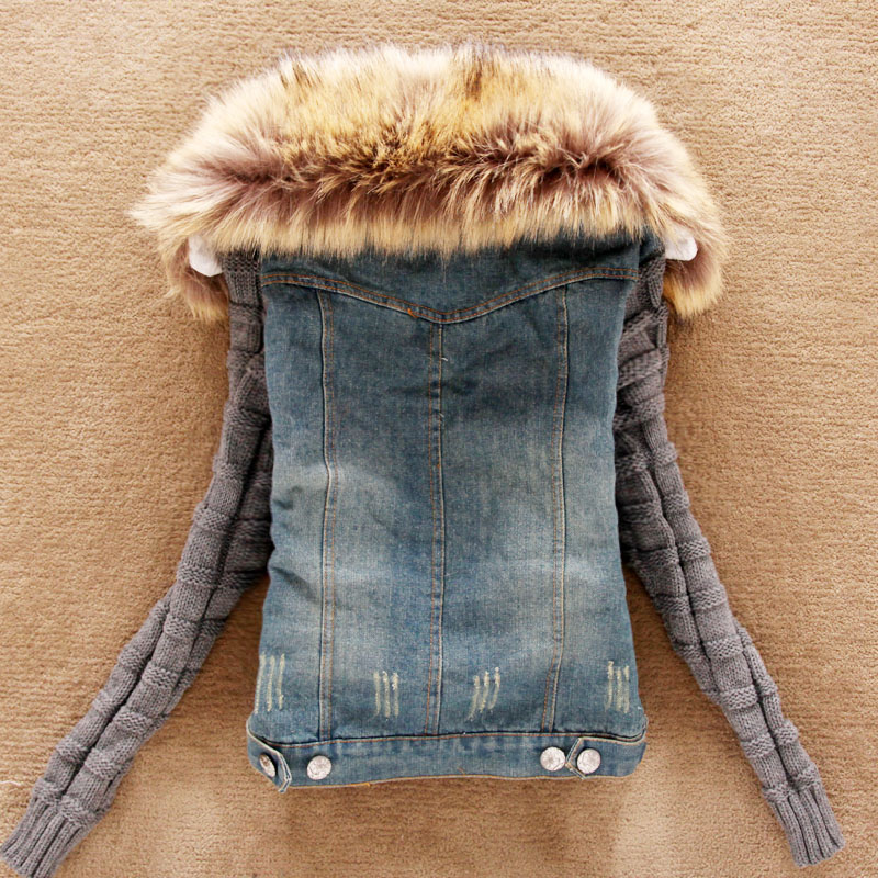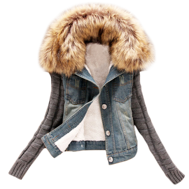 > Damen Bekleidung > Jacken > neue Damen Frühling im Herbst kurz Jeans Jacke Damen Winter slim aus Grossen Pelzkragen lamm aus Denim