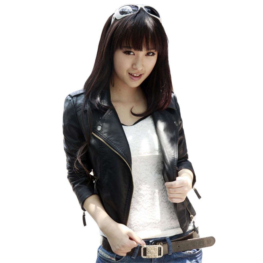 > Damen Bekleidung > Jacken > Motorrad kurzMantel falsche Lederjacke Damen slim biker weich reißverschluss Mädchen Leder jaquetas de couro Damen