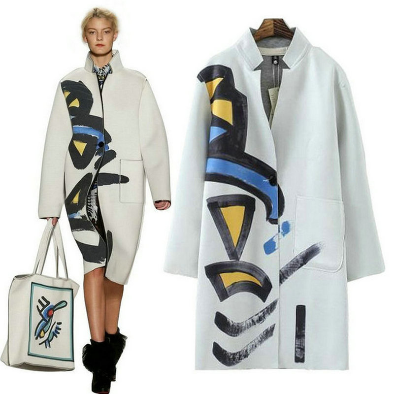 > Damen Bekleidung > Jacken > Top 2017 Baumwolle Hals Mantel weibliche Mantel gekritzel Print Parka Outwear edel elegant Verpackt Jacken Damen
