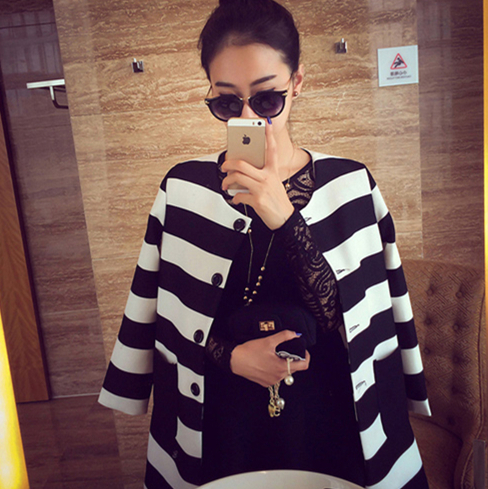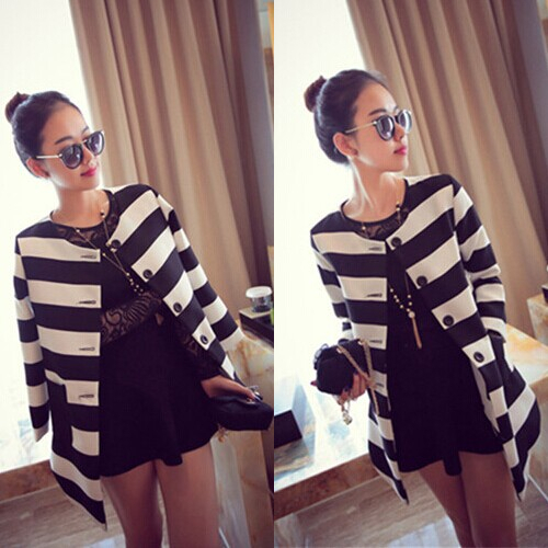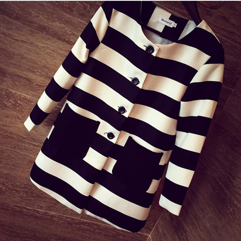 > Damen Bekleidung > Jacken > neuer Stil im Frühjahr Herbst Damen OberBekleidung gestreift bedruckten Jacke slim Gelegenheits Mantel