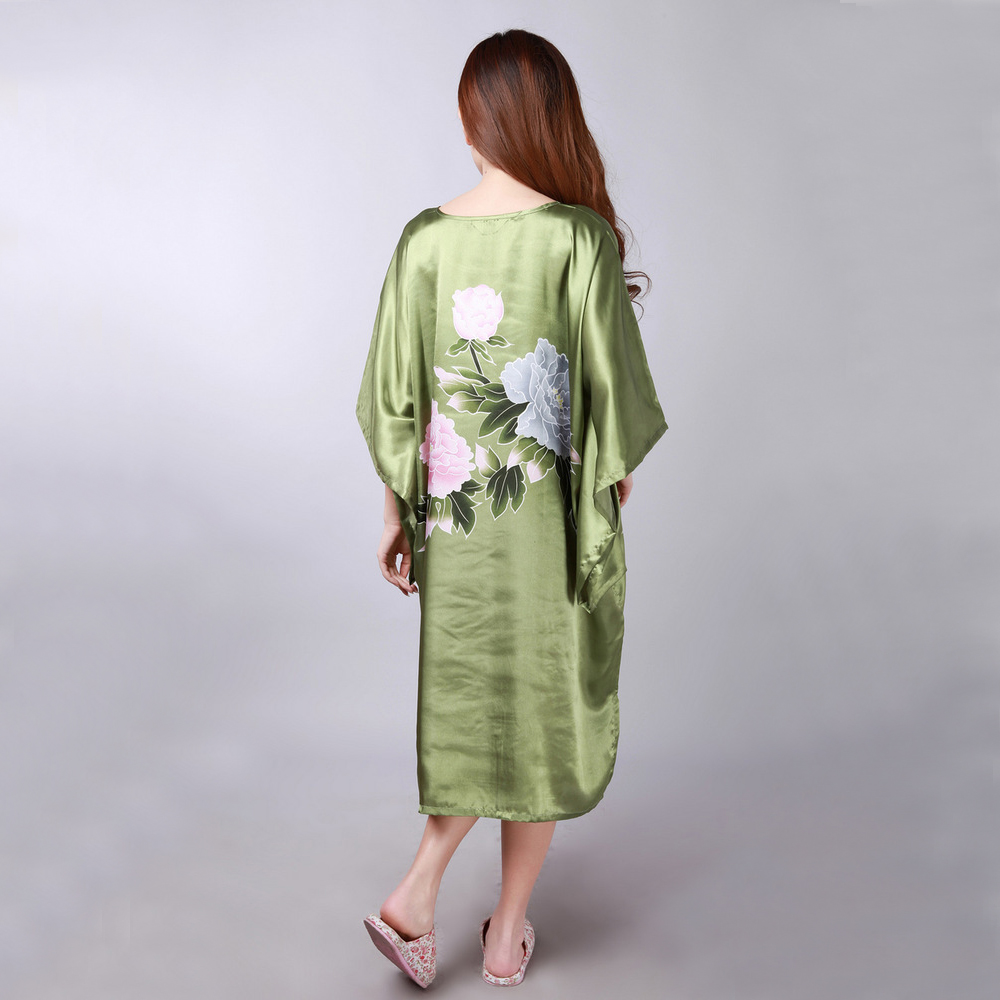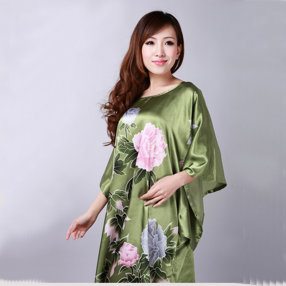 > Damen Bekleidung > Schlaf > neue Grüne Chinesische Damen Seide Rayon Gewand Locker Lounge Nachthemd Kimono Kleid Nachtwäsche Bad Pyjama plus size