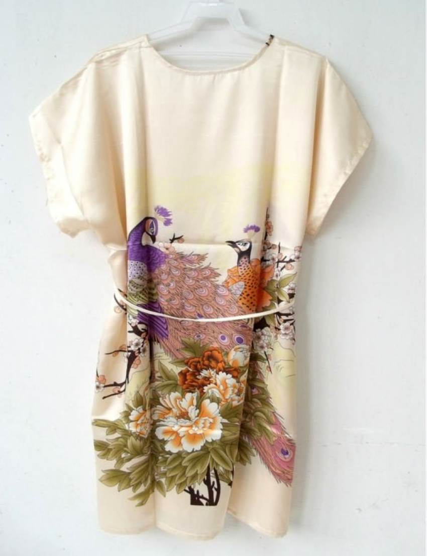 > Damen Bekleidung > Schlaf > Damen Nachthemd Nachtwäsche Mode Runde Kragen Damen Nachthemden gedruckt heißes Verkauf Beige Pfau Nachtwäsche