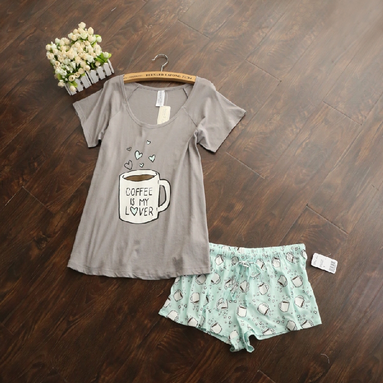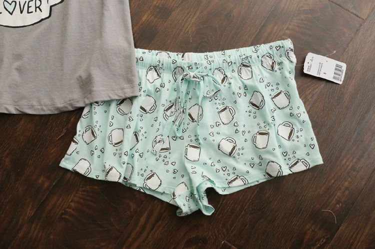 > Damen Bekleidung > Schlaf > süßer Pyjama Sets mit Weissen und Rosa Grau und grün kaffeeTassen gedruckt Damen Pyjamas heiß Verkaufen
