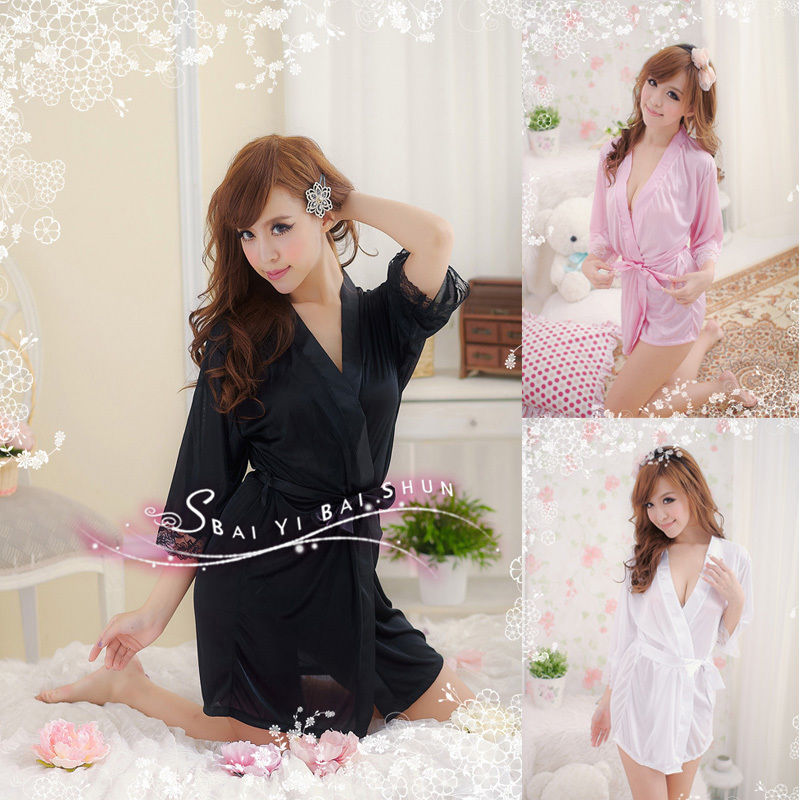 > Damen Bekleidung > Schlaf > Mode Damen sexy Roben Satin Spitzen Nachtwäsche Pyjama dessous an g String nihtclothes BadeMantel aNZiehen heiß