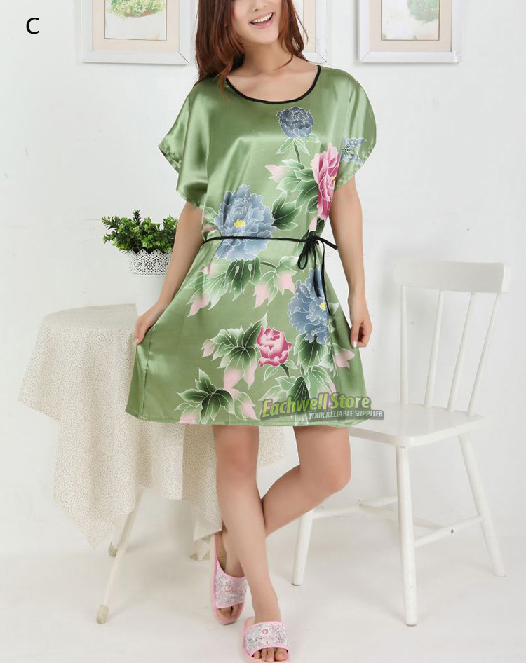 > Damen Bekleidung > Schlaf > kurze Ärmel Floral sexy plus Size Damen Morgenmantel Lady Mädchen Seidenpyjama hausmantel Nachthemden Loungewear