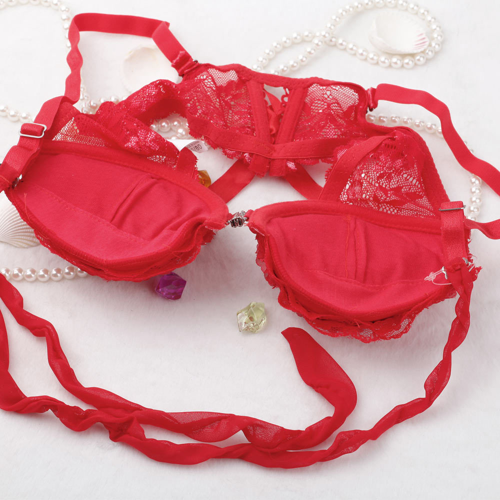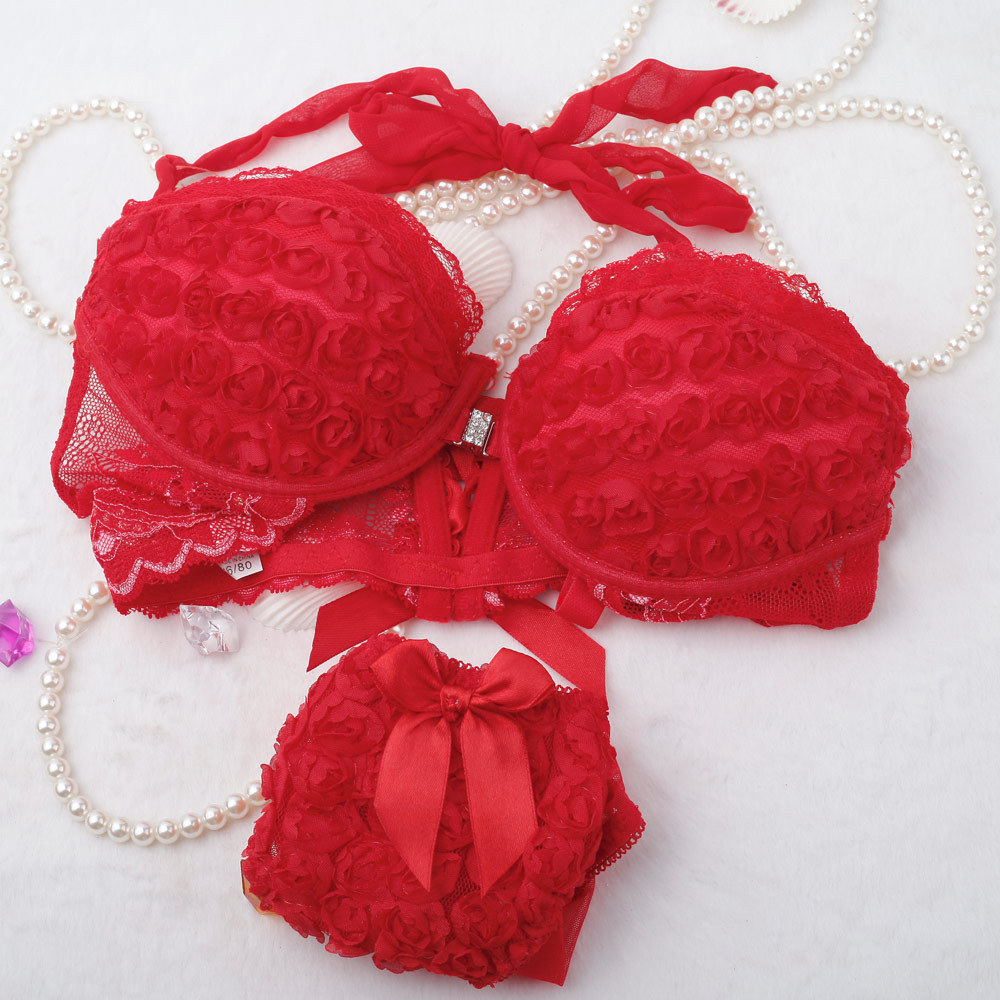 > Damen Bekleidung > Dessous > Mode sexy Damen BH Setzt Spitzen Rose Schliessung Halter Hals Drücken die Unterwäsche slips dessous mit Rosa Rot