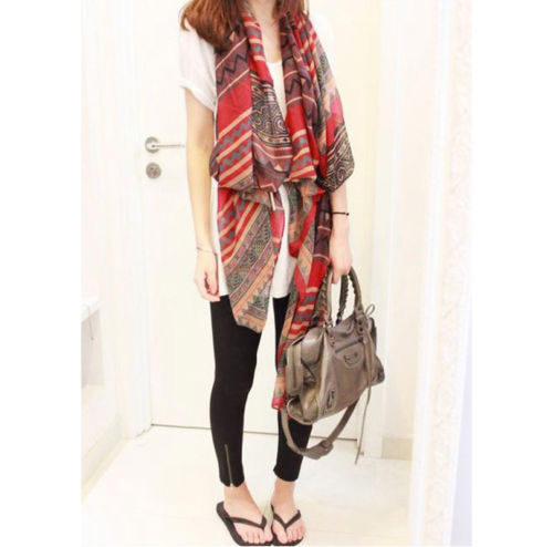 > Damen Bekleidung > Zubehör > 1 PC Damen Lady Böhmischen Winter warm weiche Baumwolle Roten Vintage Print Schals Schal lange Voile Pashmina