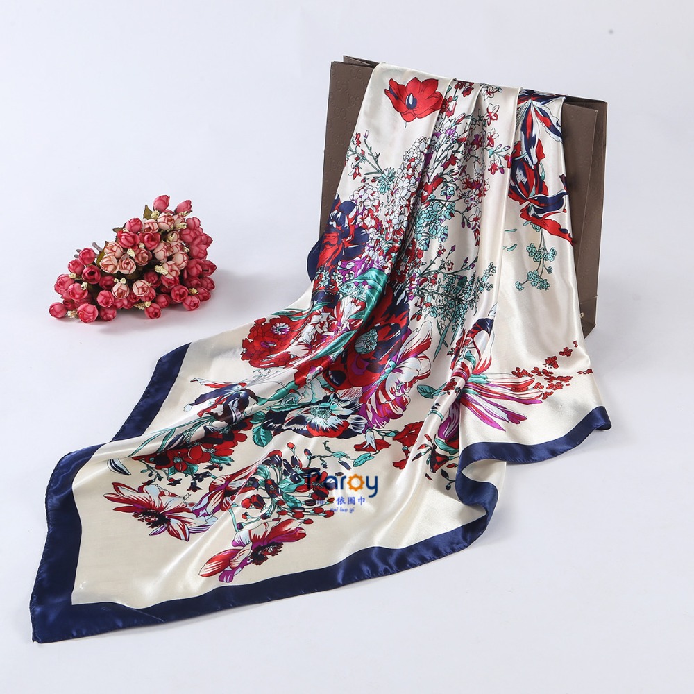 > Damen Bekleidung > Zubehör > Damen 90 * 90cm Satin Platz Schal Hochwertige imiTiert Satin Schals Kopftuch hidschab Mode
