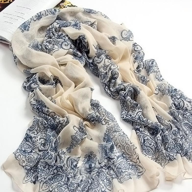 > Damen Bekleidung > Zubehör > 160 * 70cm Hochwertige Blau Weissen Porzellan Dünne Abschnitt der Seide zahnseide Damen Schal Schal l033511