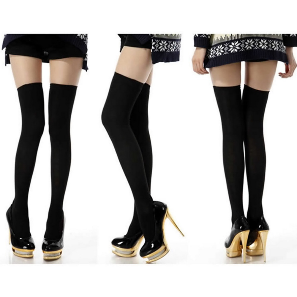 > Damen Bekleidung > Socken > 1pair Kniehohe Strümpfe Leggings über das Knie Baumwolle sexy Schwarze Damen Damen Mädchen heiß