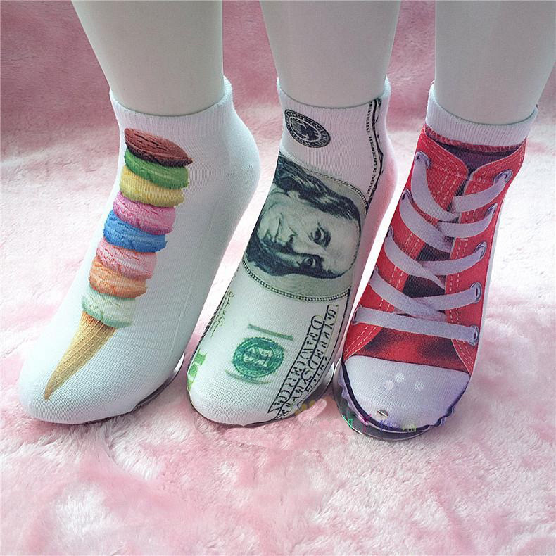 > Damen Bekleidung > Socken > 1 Paar 14 Vorlagen neue unisex Männer Damen Mode Dekolletee Söckchen Baumwolle kawaii Tier hamburger 3d gedruckte