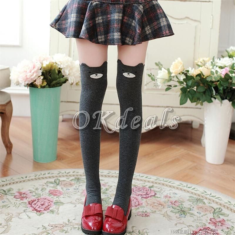 > Damen Bekleidung > Socken > 1 Paar Damen Lady Mädchen favorit süß 3d Trickfilm Tier Katze bär Gesicht Oberschenkel Strümpfe in Kniestrümpfen