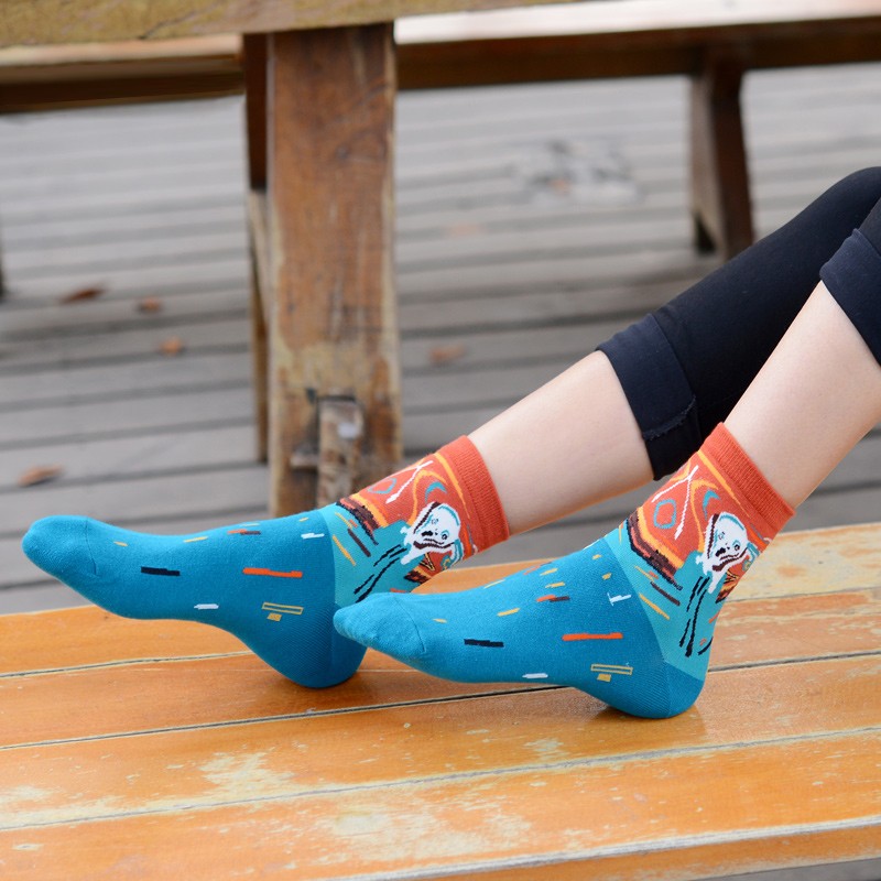 > Damen Bekleidung > Socken > 1 Paar Mode Harajuku mona lisa darstellende Kunst unisex Männer Damen kurze Socken lustig neuheit Sternennacht vintag