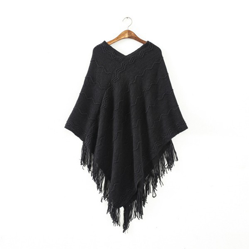 > Damen Bekleidung > Pullover > 8 Farben Winter Damen Hals Batwing Streifen gesäumt Naht unregelmäßige Tops Poncho Schal Cape Pullover