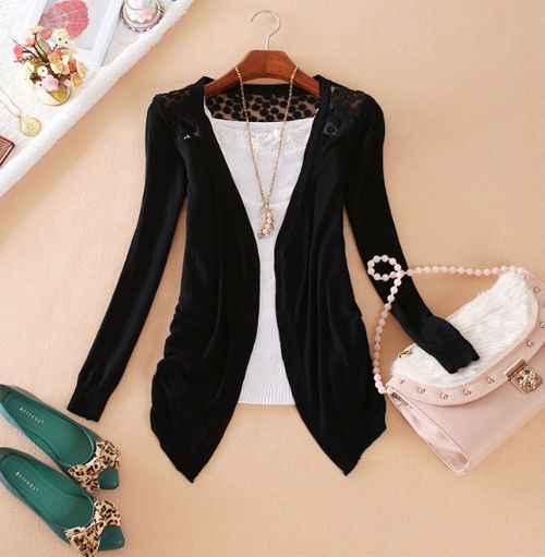> Damen Bekleidung > Pullover > heiß Hochwertige Mode Damen Strickjacke Spitzen süß Süssigkeiten reine Farbe Bluse Pullover Häkeln Stricken Strickjacke