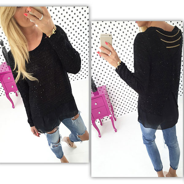 > Damen Bekleidung > Pullover > Mode pailletten Strickwaren casual slim komfortable Winter Damen Pullover solide Pullover und Pullover Weiss