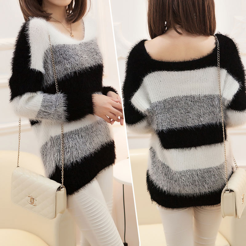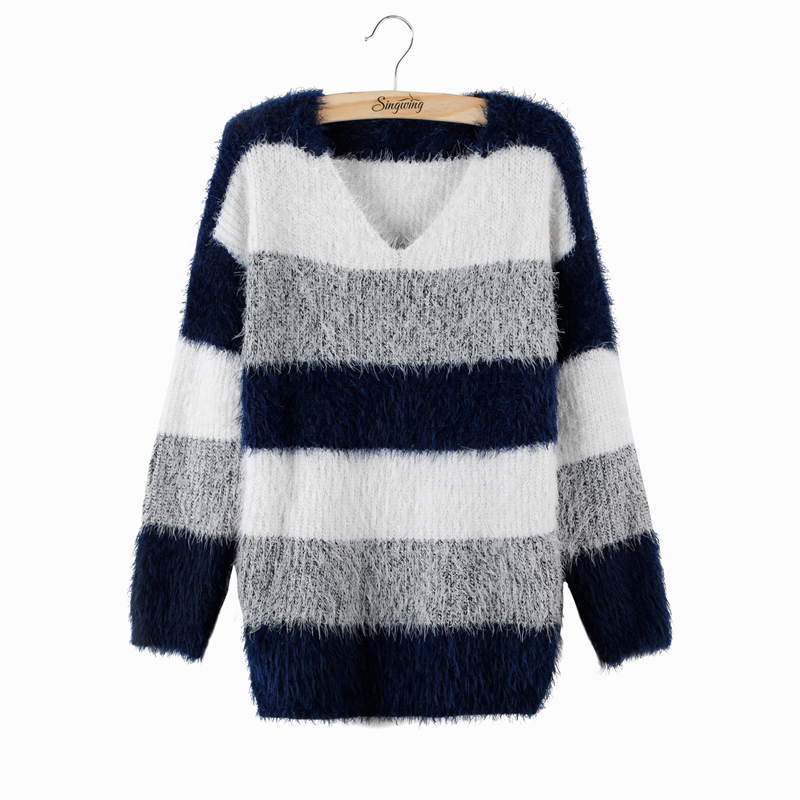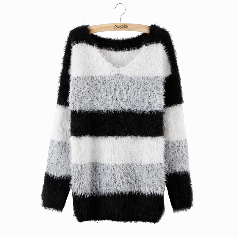 > Damen Bekleidung > Pullover > Damen Mode Gestreiften Pullover Häkeln Pullover lässig plus Size Tops aus SpRinger für hübsche mutterscha