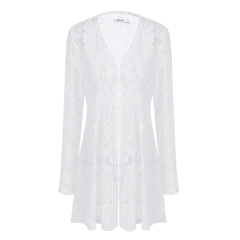 > Damen Bekleidung > Pullover > meaneor Damen Strickjacke casual Spitzen Häkeln lange Ärmel open lange Schwarz Weisse Strickjacke Mantel