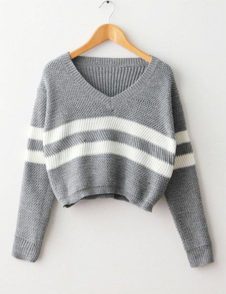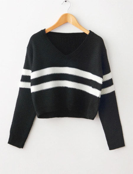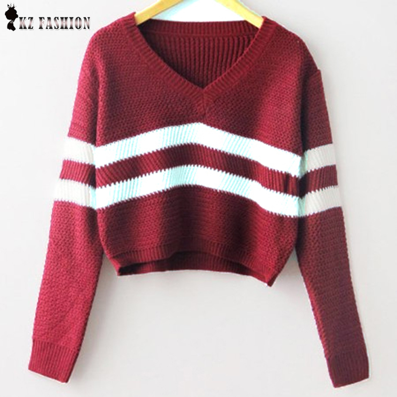 > Damen Bekleidung > Pullover > Herbst Gestreiften aus kurzen Pullover Pullover Damen Mode Hals lange Ärmel Locker Strickwaren Koreanischer Stil Top
